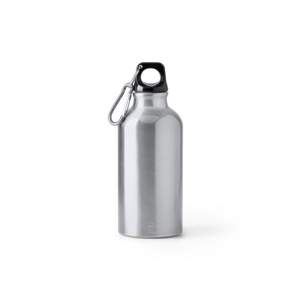Recycled aluminium bottle with single wall and matching carabiner. 400ml capacity. The carabiner is for carrying the bottle more comfortably, it is not recommended for climbing.