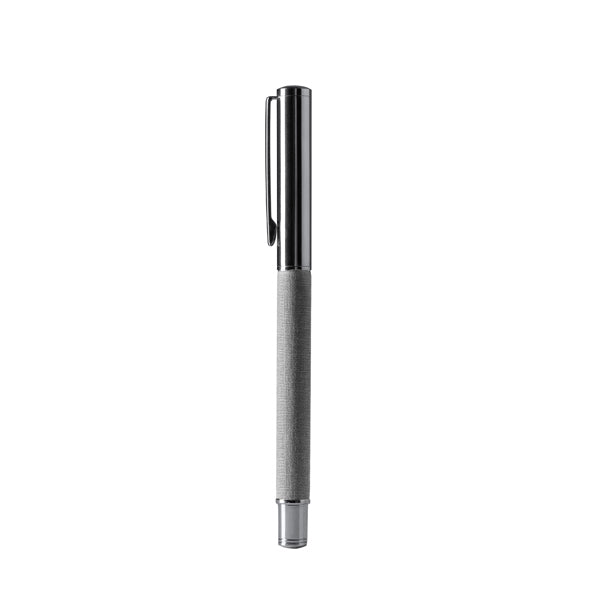 Roller ballpoint pen with a metal body combined with recycled RPET polyester. Blue ink.
