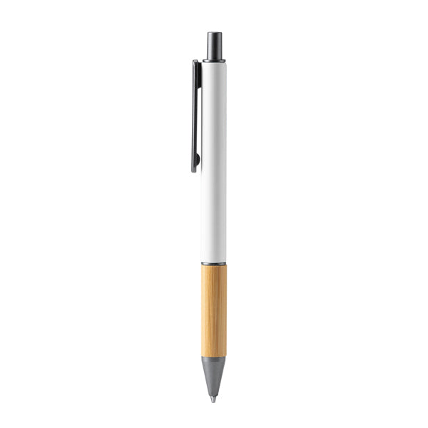 Ball pen in matt finish with bamboo grip and dark colour details. Blue ink.