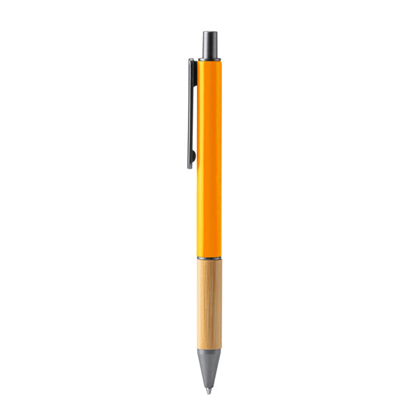 Ball pen in matt finish with bamboo grip and dark colour details. Blue ink.