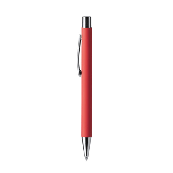Push ball pen with soft touch metal body. Tip, clip and push button in chrome plated finish. Special for laser printing. Jumbo ink refill in blue.