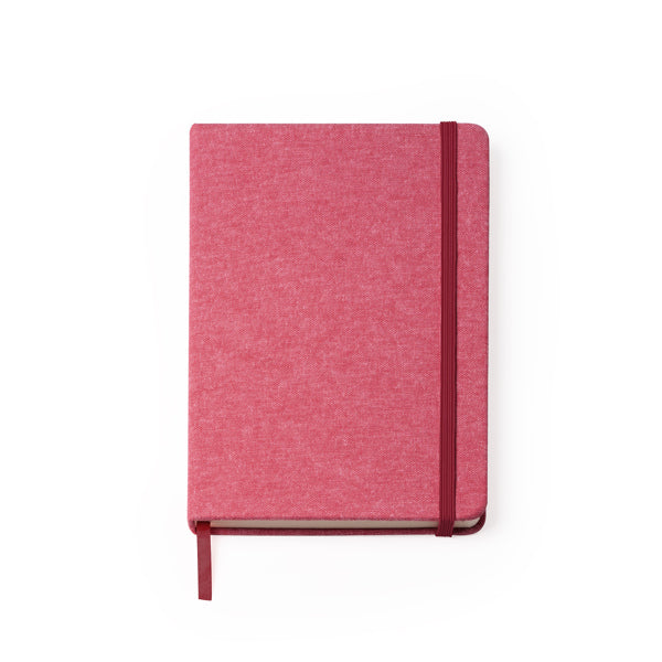 A5 notepad with cotton covers. Page marker and elastic band. 100 plain sheets.