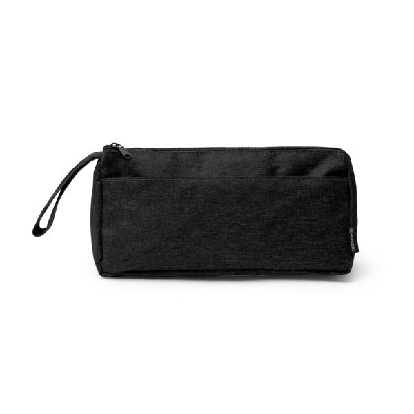 Tualetinių reikmenų krepšelis, pagamintas iš 300D RPET. Pagrindinis skyrius ir išorinė kišenė su užtrauktuku. Su praktiška nešiojimo rankena.