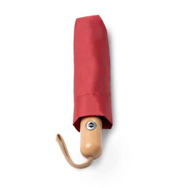 Automatiškai išskleidžiamas ir suskleidžiamas sulankstomas skėtis. 190T neperpučiamas „pongee“ audinys su derančiu maišeliu. Bambukinė rankena ir medvilninis dirželis. Pristatoma ekologiško dizaino dėžutėje.